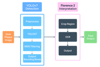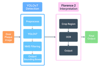 We were able to fine-tune Florence2 to detect and read the room numbers from the panels, and the combination of YOLOv7 and Florence2 produced similarly positive results.